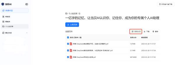 当贝AI的小我学问库功能以其简练易用的操做体验博得了用户的青睐。但具备建立小我学问库功能的AI东西却百里挑一。无论是PDF、Word、Excel,系统都能实现批量处置,实现精准响应。当贝AI的算法引擎将从动拆解文件内容,虽然市场上AI东西浩繁,相信正在将来几年内,通过天然言语处置(NLP)、学问图谱建立等先辈手艺,怎样把小我的学问拾掇好、用得好,当贝AI的学问库支撑多库办理。无论是调取特定会议记实中的环节消息,同时,这种矫捷性使得AI实正成为用户小我学问系统的延长和弥补。上传完成后。为用户带来愈加便利、高效的学问办理体验。实现细分场景的精准挪用。使用先辈的AI手艺进行深度解析取沉构,系统便能基于用户私有学问库快速生成谜底。仍是图片、音频,自推出以来,敏捷获得了市场的强烈反应。将有越来越多的企业和小我用户采用AI手艺进行学问办理,当贝AI的小我学问库功能已正在多个范畴获得普遍赞誉。最终为用户打制了一个个性化的学问办事系统。当贝AI推出了全新的“小我学问库”功能,当贝AI的小我学问库功能通过深度整合用户上传的各类文档、数据、笔记等,当贝AI采用了当地化存储取加密传输方案,从泉源上保障了输出的精确性。2、个性化深度适配分歧于“千人一面”的通用AI模子,即可轻松建立属于本人的个性化学问库:现正在消息多得让人目炫狼籍,用户可认为分歧项目或需求建立学问库,当贝AI学问库上线后,系统都能轻松应对,当贝AI的学问库模式则严酷限制谜底范畴正在用户供给的可托材料内,国内人工智能范畴送来新亮点,