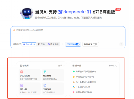 当贝AI深度融合DeepSeek-R1 671B满血版、豆包、通义千问等顶尖大模子?