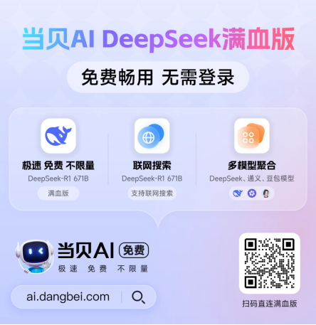 当贝AI深度融合DeepSeek-R1 671B满血版、豆包、通义千问等顶尖大模子?