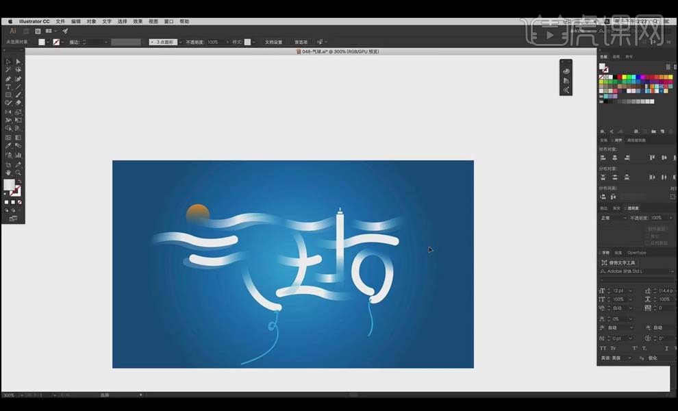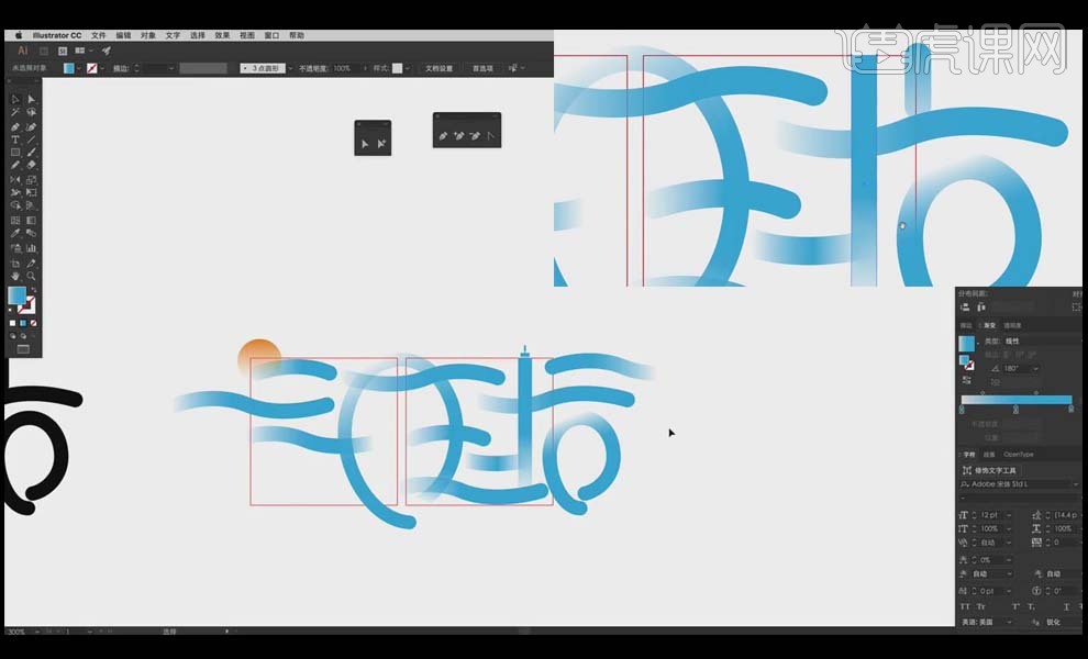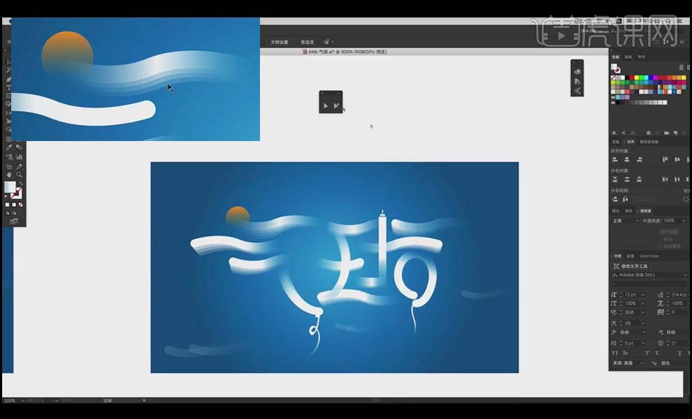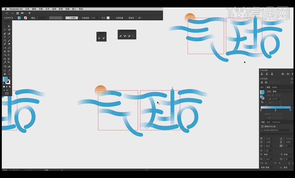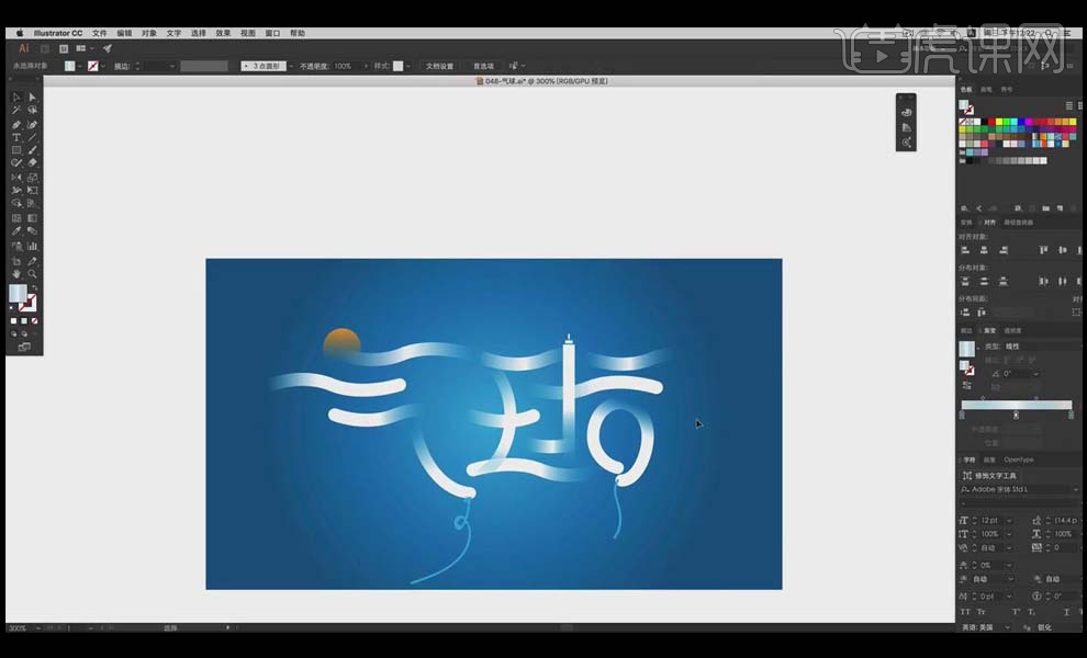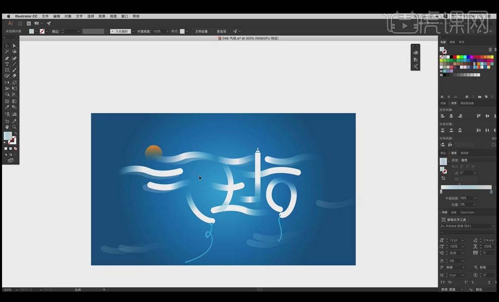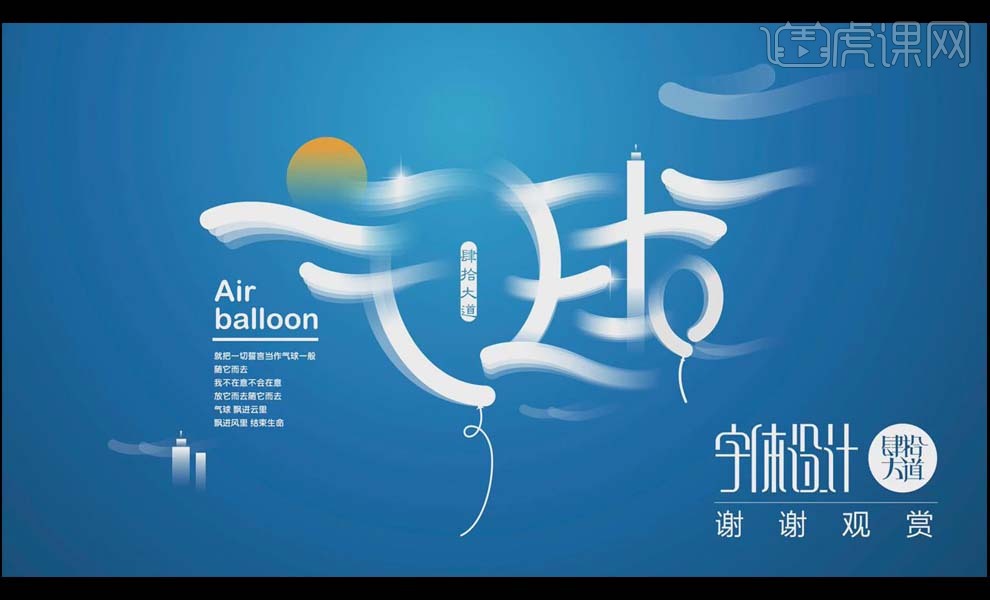 9、全体复制,“气”的一撇利用【椭圆东西】绘制太阳的外形来进行替代,利用【钢笔东西】绘制出两点毗连的呈现体例。渐变。虎课网为您供给字体设想版块下的AI-气球创意字体设想及思 图文教程,把“求”字的一点用前面的程度的云替代!通过程度标的目的的笔画去映托飘正在空中的气球。